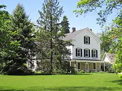 There was originally two rooms on the first floor. The east room had a chimney in the center and a staircase leading to the kitchen below. Next to the rooms is a small hall with stairs to the second floor. The hall also led to a bathroom and an entrance to the kitchen. The largest room on the second floor is on the east. The north side features two small rooms. On the west is a bedroom and a bathroom. The main hall has a stairway to the third floor, which was probably originally a single room, but has been converted into two. In the first floor of the addition, the dining room has a maple floor. The kitchen was also relocated here to the south; it was originally a pair of pantries, but was converted in the 20th century. A root cellar is on the west. A hall runs on the second floor to two bedrooms.
