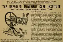 - ↑ The Improved Movement Cure Institute. Health: A Home Magazine Devoted to Physical Culture and Hygiene, 1904.