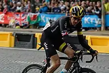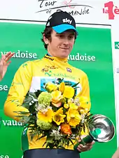 Geraint Howell Thomas, OBE (Welsh pronunciation: [ˈɡɛraint]; born 25 May 1986) is a Welsh professional racing cyclist who rides for UCI WorldTeam Ineos Grenadiers,[5] Wales and Great Britain.[6] He is one of the few riders in the modern era to achieve significant elite success as both a track and road rider, with notable victories in the velodrome, in one-day racing and in stage racing. On the track, he has won three World Championships (2007, 2008, and 2012), and two Olympic gold medals (2008 and 2012), while on the road he won the 2018 Tour de France becoming the first Welshman and third British rider to win it.[7][8]