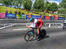 Thomas competing in the road time trial at the 2014 Commonwealth Games, where he took the bronze medal