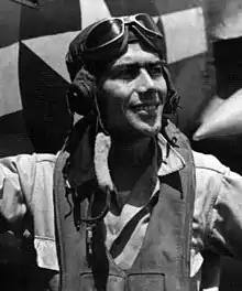 On November 11, he downed two more Zeros over Ormoc Bay, and on December 7, the third anniversary of the attack on Pearl Harbor, he shot down three Oscars and one Nakajima Ki-49 "Helen" bomber over Cebu, for which he received his second Distinguished Service Cross.[3] These victories brought him to a total of 21 aerial victories, a quadruple ace, and he was promoted to the rank of lieutenant colonel. He became Deputy Commander of the 49th Fighter Group until March 1945.[3][6]