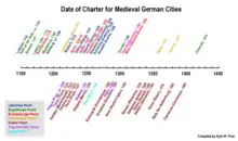 The German town law (German: Deutsches Stadtrecht) or German municipal concerns (Deutsches Städtewesen) was a set of early town privileges based on the Magdeburg rights developed by Otto I. The Magdeburg law became the inspiration for regional town charters not only in Germany, but also in Central and Eastern Europe who modified it during the Middle Ages. The German town law (based on the Magdeburg rights) was used in the founding of many German cities, towns, and villages beginning in the 13th century.[1]