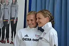 - ↑ "EM-Bronze für Lena Schöneborn - Janine Kohlmann bucht Olympia-Ticket" [Bronze for Lena Schöneborn at the European Champs; Janine Kohlmann books the Olympic ticket] (in German). Berliner Morgenpost. 23 August 2015. Retrieved 24 August 2015.