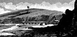 In the late 1860s and 1870s, locals advocated the erection of a jetty at the Boatharbour.[10][11] In 1880 a 200-foot-long jetty was completed[12][13] but it was too short to allow coastal ships to berth.[12] One ship that did call there was Dairy Maid,[14] a small wooden-hulled steamer built in the Rock Davis shipyard.[15] The jetty was extended, in the mid-1880s, first by 200-feet and subsequently another 100 feet.[12][16] The 500-foot-long jetty was extensively damaged in fierce storms in 1891.[17][12] It was rebuilt but, during that work, was damaged again by stormy weather in 1892,[18] necessitating more repairs. A new crane was installed in 1893.[19] The jetty was probably used to land materials for railway construction.[20]