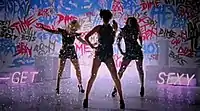 In April 2009, Sugababes travelled to the United States to work on their seventh studio album, Sweet 7.[1] They signed a contract with Jay Z's record label, Roc Nation, resulting in working with high-profile producers .[2] "Get Sexy", which was selected as the album's lead single, was written by Fred Fairbrass, Richard Fairbrass, Rob Manzoli, Philip Lawrence, Ari Levine, Bruno Mars and produced by the latter three under their stage name The Smeezingtons.[3] Working with The Smeezingtons was described by group member Amelle Berrabah as an "amazing" and "great opportunity".[4] Berrabah also stated in an interview with Bang Showbiz that the song "doesn't sound like anything we have ever done before".[5] The song premiered on BBC Radio 1 on 7 July 2009 in a show presented by Scott Mills.[6] In an interview for Digital Spy, Keisha Buchanan said that the response to the song was great, saying: "From the beginning there's been a real buzz about the track. It's had a great response from so many people, even if they say, 'Forget about the rest of them, this one I love'."[4] Later, on 27 September 2013, Buchanan said of the song, "I just didn't feel like that was a representation of who we were as a band but we didn't, at that point, have a lot of say." However, she also said she enjoyed working with Mars and would like to collaborate on a new song with him and founding Sugababes members Mutya Buena and Siobhán Donaghy.[7]