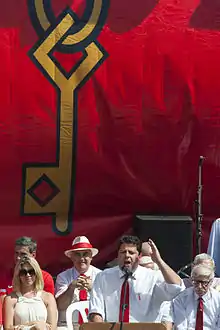 The 10th National Day, held in 2001 included a speech by William Serfaty, the then leader of the SDGG, which stressed the themes of national identity, unity, resisting Spanish pressure and decolonisation.[2]
