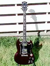 The Gibson SG is a solid-body electric guitar model introduced by Gibson in 1961,[1] following on from the 1952 Gibson Les Paul. It remains in production today in many variations of the initial design. The SG Standard is Gibson's best-selling model of all time. SG stands for "solid guitar".[2]