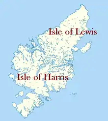 Gilhemhoire's descendants eventually branched: the Morrisons of Ness controlled Dun Eistein on the Isle of Lewis, while the Morrisons of Harris remained on the Isle of Harris, and held Dun Phabbay. The 'Isle of Lewis' and the 'Isle of Harris' are in fact parts of the same land mass.