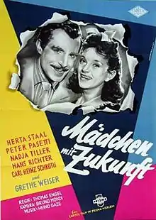 Girl with a Future (German: Mädchen mit Zukunft) is a 1954 West German comedy drama film directed by Thomas Engel and starring Herta Staal, Peter Pasetti and Nadja Tiller.[1] It was shot at the Tempelhof Studios in West Berlin.The film's sets were designed by the art directors Emil Hasler and Walter Kutz.