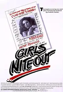 Girls Nite Out is a 1982 American slasher film written and produced by Anthony N. Gurvis, directed by Robert Deubel, and starring Julia Montgomery, Suzanne Barnes, Rutanya Alda, and Hal Holbrook. The film focuses on a group of female college students who are targeted by a killer in a bear mascot costume during an all-night scavenger hunt on their campus.