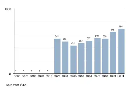 - ↑ "Popolazione Residente al 1° Gennaio 2018". Italian National Institute of Statistics. Retrieved 16 March 2019.