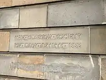The Glasgow Society of Lady Artists was founded in 1882 by eight female students of the Glasgow School of Art with the aim of affording due recognition to women in the field of art. It has been described by Jude Burkhauser as "the first residential club in Scotland run by and for women".[1] In the early days of the club, they met at 136 Wellington Street, Glasgow.[2]
