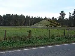 Between 1999 and 2002, archeological excavations have explored the Dunragit area, and a complex of Neolithic monuments has been uncovered. Nothing can now be seen above ground, but aerial photography and excavation has revealed an early Neolithic cursus monument, and the remains of three later Neolithic concentric timber circles, dating to around 2500 BC; the outer circle of which was 300 metres (980 ft) in diameter.[2] Around 400 metres (1,300 ft) south of the timber circles is the mound of Droughduil, which has been previously identified as a medieval motte.[3] The location of the mound, aligned with one of the entrances to the timber circles, prompted speculation as to an earlier origin, and the 2002 excavation season focused on this feature. Optically stimulated luminescence dating of excavated material showed that the mound was constructed around 2500 BC, and has been compared to Silbury Hill in Wiltshire.[4]