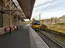 Glossop railway station serves the Peak District town of Glossop in Derbyshire, England. Glossop is the third busiest railway station in the county of Derbyshire after Derby and Chesterfield. It is located just north of Norfolk Square in the centre of Glossop.