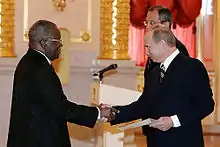 Gnagno Philibert Fagnidi presents his Letters of Credence to Russian President Vladimir Putin on 13 April 2007.