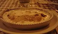 It is prepared with gnocchi made of semolina, whole milk, butter and Parmesan cheese, seasoned with salt and black pepper.[1] They are baked in the oven after being sprinkled with Parmesan cheese, and are traditionally topped with meatballs, tomato sauce and parmesan cheese.