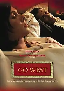 Go West is a 2005 Bosnian drama directed by Ahmed Imamović. It tells the story of two gay lovers, one being a Bosniak and the other a Serb, during the Bosnian War. It was developed jointly by two studios, one being in Bosnia and the other in Croatia.
