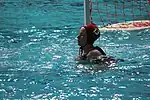 The primary role of the goalkeeper is to block shots at the goal.[25] After saving the ball, the goalkeeper has the responsibility to keep possession of the ball in order to stop opposing players regaining possession.[26] They must make sure that whenever the opposition appears to be ready to make a shot on goal, their hands are near or above the surface of the water.[27] They also possess the job to pass down the pool accurately to retain possession of the ball,[28] often starting the team's counterattack.[29]