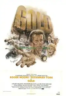 Gold is a 1974 British thriller film starring Roger Moore and Susannah York and directed by Peter R. Hunt. It was based on the 1970 novel Gold Mine by Wilbur Smith. Moore plays Rodney "Rod" Slater, general manager of a South African gold mine, who is instructed by his boss Steyner (Bradford Dillman) to break through an underground dike into what he is told is a rich seam of gold. Meanwhile, he falls in love with Steyner's wife Terry, played by York. In the United States, the film was released only as part of a double bill with The Taking of Pelham One Two Three.