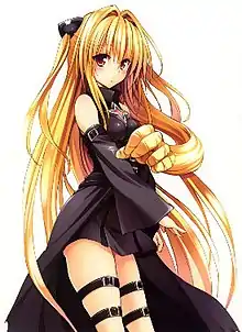 Golden Darkness (Japanese: 金色の闇, Hepburn: Konjiki no Yami), commonly nicknamed "Yami" (ヤミ), is a fictional character in the manga series To Love Ru, created by Saki Hasemi and Kentaro Yabuki. In the series, Golden Darkness is portrayed as the deadliest assassin in the galaxy who is hired to kill protagonist Rito Yuuki, but instead ends up developing feelings for and falling in love with him.