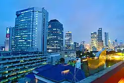 The area is bordered by main avenues of Jakarta: Jalan M.H. Thamrin-Jalan Jenderal Sudirman (north-southwest), Jalan H.R. Rasuna Said (north-southeast), and Jalan Jenderal Gatot Subroto (east-west). There are many other roads bisecting the area. The Golden Triangle's commercial areas include SCBD (45 hectares), Mega Kuningan (54 hectares), Rasuna Epicentrum (53.6 hectares) and Kuningan Persada (17 hectares).[2] The Golden Triangle is one of the fastest evolving CBDs in the Asia-Pacific region.[3]