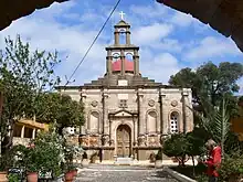 The monastery is a Venetian style fortress with towers at each end, and some Baroque influences added later. It measures roughly 40 metres by 50 metres and contains some 50 monks’ cells on two floors.[1] Its courtyard is rectangular shaped and is dominated by a dome church with an ornate Venetian façade; the church is dedicated to the Virgin. The chapel in the courtyard is reported to have some of the oldest frescoes in Crete.