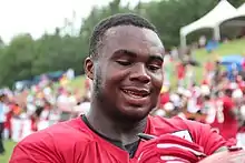 Grady Jarrett (born April 28, 1993) is an American football defensive end for the Atlanta Falcons of the National Football League (NFL). He played college football at Clemson.