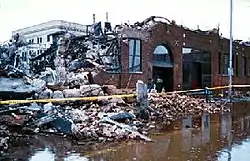 ![]() The remains of the former Herald building after it was destroyed by fire and floodwater | |