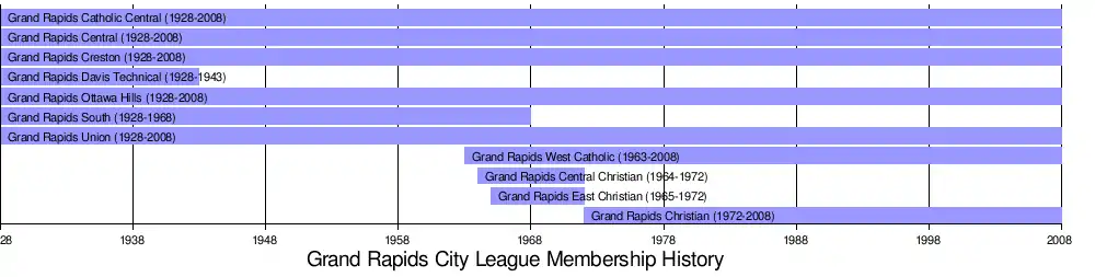 The following high schools, all within the City of Grand Rapids, were the final members of the Grand Rapids City League: