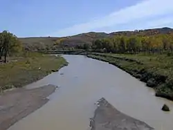 The Grand River (Lakota: Čhaŋšúška Wakpá[4]) is a tributary of the Missouri River in South Dakota in the United States. The length of the combined branch is 110 mi (177 km). With its longest fork, its length is approximately 200 mi (320 km).