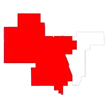 The Grande Prairie district (red) within the City of Grande Prairie (white), 2017 boundaries.