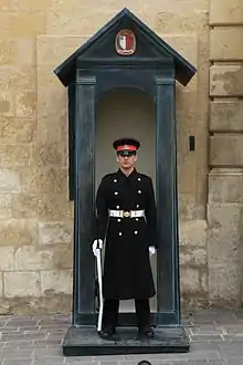 The Grandmaster's Palace occupies a city block in the centre of Valletta, and it is the largest palace in the city.[2] Its façade is located opposite the Main Guard in St. George's Square (Maltese: Misraħ San Ġorġ) along Republic Street (Maltese: Triq ir-Repubblika).[3] The palace is also bounded by Archbishop Street (Maltese: Triq l-Arċisqof), Old Theatre Street (Maltese: Triq it-Teatru l-Antik) and Merchants Street (Maltese: Triq il-Merkanti).