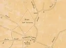 Around 1795, blacksmith John Tennally opened a small tavern at the intersection of present-day Wisconsin Avenue and River Road, which were former Native American footpaths. Around a dozen families soon moved to the area, forming a village called Tennallytown, the second oldest settlement in present-day Washington, D.C.[2][4][5] The village became a stagecoach stop for people traveling between Georgetown and Maryland. In the 1791 plan for the new federal City of Washington, the village was included in the city's boundary. Due to its distance from the city center, Tenallytown would remain a small rural village in Washington County for many years. The village's name gradually changed to the present spelling, Tenleytown.[2][6]