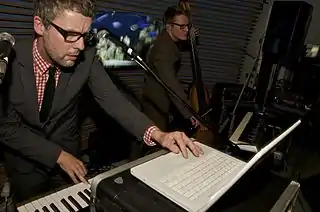 Since opening the main stage at the Big Chill festival in 2009,[11] Grasscut have performed at Cecil Sharp House, Union Chapel, the ICA,[12] Koko and Tate Britain,[13] as well as in France, Germany, Belgium, Holland, Czech Republic, Portugal, Poland and Slovakia. They have shared stages with the likes of Kronos Quartet, Silver Apples, Caribou, Fink and Bonobo. Although they performed early shows as a duo, Grasscut have usually been joined onstage by drummer Aram Zarikian (Andreya Triana) and string player Emma Smith (Geese, Elysian Quartet, Jon Hopkins, James Yorkston, Imogen Heap, Hot Chip). They are also known for their use of visuals, originally developed with As Described (Portishead, Cinematic Orchestra).