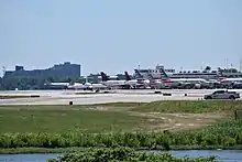 The view of Reagan National Airport terminals B and C from Gravelly Point.