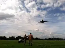 Gravelly Point has served as an iconic spot for plane spotters, picnickers and others to watch planes take off and land from National Airport for more than half a century.[2][3] It sits directly under the glide path of the airport's main runways; aircraft pass between 100 and 200 feet overhead on final approach to land on Runway 19 and when taking off from Runway 1.