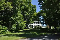 The principal visible surviving elements of the area's early industrial history are three houses. The oldest is the Trickey-White House at 20 Great Falls Road, a Federal style house believed to be built by Zebulon Trickey; it has an ell that may be of even greater age. The Federal style Peter Trickey House, at 8 Great Falls Road, was probably built by Enoch White about 1820, but was owned for many years by the Trickey family. The cellar hole of a later Enoch White House is located just north of this house. Finally, the Mayberry-Libby House at 4 Great Falls Road, built in 1847, is a particularly fine example of a Greek Revival house with a temple front. Industrial remnants of the district are located along the banks of the river, and are partially obscured by the modern bridge and dam at the site.[2]