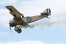 The Great War Display Team (GWDT) started out in 1988 and was originally called The Wombats.[1][2] It was an ad-hoc collection of aircraft including five SE5as, two Fokker Dr.Is and a Fokker D7, many of them flown by their builders, and appeared that year at the Biggin Hill Air Show. 2014 was the 27th anniversary of the Team's formation and two of the original members, Des Biggs and Doug Gregory, were still flying with the Team until 2012 and Doug flew his SE5a in January 2013 to celebrate his 90th Birthday.