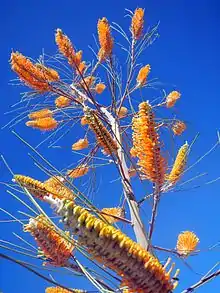According to the Herbarium of Western Australia's records, there are 3,314 flowering plant species from 119 different families and over 4,200 different taxa (which includes undescribed species, subspecies, hybrids and varieties) recorded so far for the Great Western Woodlands. It is estimated that almost half of these species are endemic to the south west of Australia.[5] This floristic diversity can be attributed in part to the wide range of habitats throughout the region, from heavy soil valley floors, to sandplain, salt lakes, granite hills, banded ironstone hills, greenstone belt mosaics and many others. Each of these environments provides the conditions for unique types of flora. The amount of plant diversity in the Great Western Woodlands is comparable to the plant diversity in Canada, a country more than 60 times the size of this region.[18]
