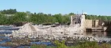 The Great Works Dam was a dam on the Penobscot River between Old Town and Bradley in Penobscot County, Maine, USA. The original Great Works Dam was constructed in the 1830s and replaced between 1887 and 1900. The dam was originally owned by the Penobscot Chemical Fibre Company and was acquired by Diamond International Corporation in 1968 along with the adjacent mill. The dam and powerhouse were sold several more times, and in 2010 the Penobscot River Restoration Trust bought the dam from PPL Corporation based on an agreement that was signed in 2004. On June 11, 2012, deconstruction of the dam began as a part of an extensive project involving four dams to restore eleven species of sea-run fish to the Penobscot River.[2][3][4]
