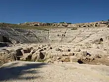 The Greek theatre of Syracuse lies on the south slopes of the Temenite hill, overlooking the modern city of Syracuse in southeastern Sicily, Italy. It was first built in the 5th century BC, rebuilt in the 3rd century BC and renovated again in the Roman period. Today, it is a part of the Unesco World Heritage Site of "Syracuse and the Rocky Necropolis of Pantalica".[1]