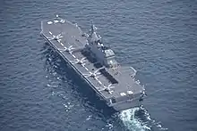 The Republic of Korea Navy is considered to be a green-water navy.[8] In 2011, the government authorized the building of a naval base on Jeju Island to support the new Dokdo-class amphibious assault ships, the base will also be capable of supporting joint forces with the US Navy.[18] A ski-jump for the operation of V/STOL jet fighters is being considered for the second ship of the Dokdo class.[19] The Korean government is considering to buy surplus Harriers as a possible interim for the F-35 Lightning II if they choose to operate VTOL aircraft at all.[20] On December 3, 2021, the National Assembly passed the budget to fund a fixed-wing aircraft carrier tentatively named CVX-class aircraft carrier capable of operating F35B, expected to enter operations possibly as early as 2033 LinkLinkLink South Korea participates in the Combined Task Force 151 with the expeditionary force Cheonghae Unit: