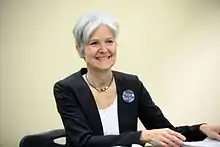 Some Greens feel that the Green Party's position should be simply to follow the laws and regulations of campaign finance.[43] Other Greens argue that it would injure the Green Party not to practice a principled stand against the anti-democratic influence of money in the political process. Candidates for office, like Jill Stein, the 2012[44] and 2016 Green Party nominee for the President of the United States, typically rely on smaller donations to fund their campaigns.
