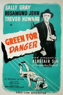 - ↑ "' Green for Danger,' New British Mystery, With Alastair Sim as Detective, Bill at Winter Garden -- Musical at the Globe". The New York Times. 8 August 1947.