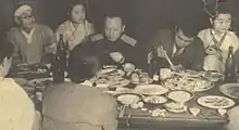 ![]() Mikhail Khan, Kim Il Sung, and Mekler on 14 October 1945 | |