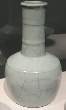 In some Asian sources "Guan ware" may be used in the literally translated sense to cover any "official" wares ordered by the Imperial court.[2] In April 2015, Liu Yiqian paid US$14.7 million for a Guan ware vase from the Southern Song.[3]