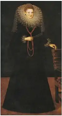 Van Deynum arrived in Genoa in 1602 in the company of two brothers, one of whom was the Antoni mentioned earlier and another of whom the name has not been preserved.[5] He must have achieved success early on as he painted a portrait of the local doge Agostino Doria sitting on a throne with his family not long after his arrival.[6] It is known that he was the victim of an assault in 1606 and that in 1607 he was imprisoned for non-payment in a case concerning his activity as an art dealer. The Portrait of a Genovese lady in a black dress (Palazzo Bianco, Genoa) dated 1610 is the latest dated painting attributed to the period of his residence in Genoa.[7] He is believed to have remained in Genoa until 1613.[8]