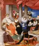 After some time van Deynum came into conflict with the Brussels Guild of Saint Luke. As long as he solely worked for the Archdukes he was free from the local Guild requirements. However, once he started to work for private patrons, the Guild protested and the Guild's deacon fined van Deynum. Van Deynum refused to pay and was then sued before the Magistrate's court. The court requested he either join the Guild or cease to work as an artist. He appealed the verdict to the Council of Brabant, which confirmed the court's ruling. He then took his case to the Archdukes who supported him. By letters executed in Ghent on 31 July 1618 they exempted him from the obligation to join the painter's Guild and relieved him of all his obligations towards the Guild. Van Deynum is documented working on private commissions for Charles d'Arenberg and Anne de Croy in Enghien around 1614–1617.[7] He collaborated with Servaes de Coulx and Jacob van der Laemen on the Adoration of the Magi (Enghien, convent of the Capuchins). His contribution to this work was probably limited to the portraits in the background.[7]