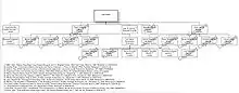 Humberto García Ábrego, brother of Juan García Ábrego, tried to take the lead of the Gulf Cartel, but ultimately failed in his attempt.[48] He did not have the leadership skills nor the support of the Colombian drug-provisioners. In addition, he was under observation and was widely known, since his surname meant more of the same.[49] He was to be replaced by Óscar Malherbe de León and Raúl Valladares del Ángel, until their arrest a short time later,[50] causing several cartel lieutenants to fight for the leadership. Malherbe tried to bribe officials $2 million for his release, but it was denied.[51] Hugo Baldomero Medina Garza, known as El Señor Padrino de los Tráilers (the lord of the Trailers), is considered one of the most important members in the rearticulation of the Gulf Cartel.[52] He was one of the top officials of the cartel for more than 40 years, trafficking about 20 tons of cocaine to the United States each month.[53] His luck ended in November 2000 when he was captured in Tampico, Tamaulipas and imprisoned in La Palma.[54] After Medina Garza's arrest, his cousin Adalberto Garza Dragustinovis was investigated for allegedly forming part of the Gulf Cartel and for money-laundering, but the case is still open.[55] The next in line was Sergio Gómez alias El Checo, however, his leadership was short-lived when he was assassinated in April 1996 in Valle Hermoso, Tamaulipas.[56] After this, Osiel Cárdenas Guillén took control of the cartel in July 1999 after assassinating Salvador Gómez Herrera alias El Chava, co-leader of the Gulf Cartel and close friend of him, earning his name as the Mata Amigos (Friend Killer).[57]