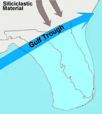 The Gulf Trough, also known as the Suwanee Straits,[1] is an ancient geologic feature of Florida present during the Paleogene period, a period of roughly 42.47 million years that started after the end of the Mesozoic Era (65.5 Mya). A strong marine current, similar to the Gulf Stream, scoured the trough from southwest to northeast.